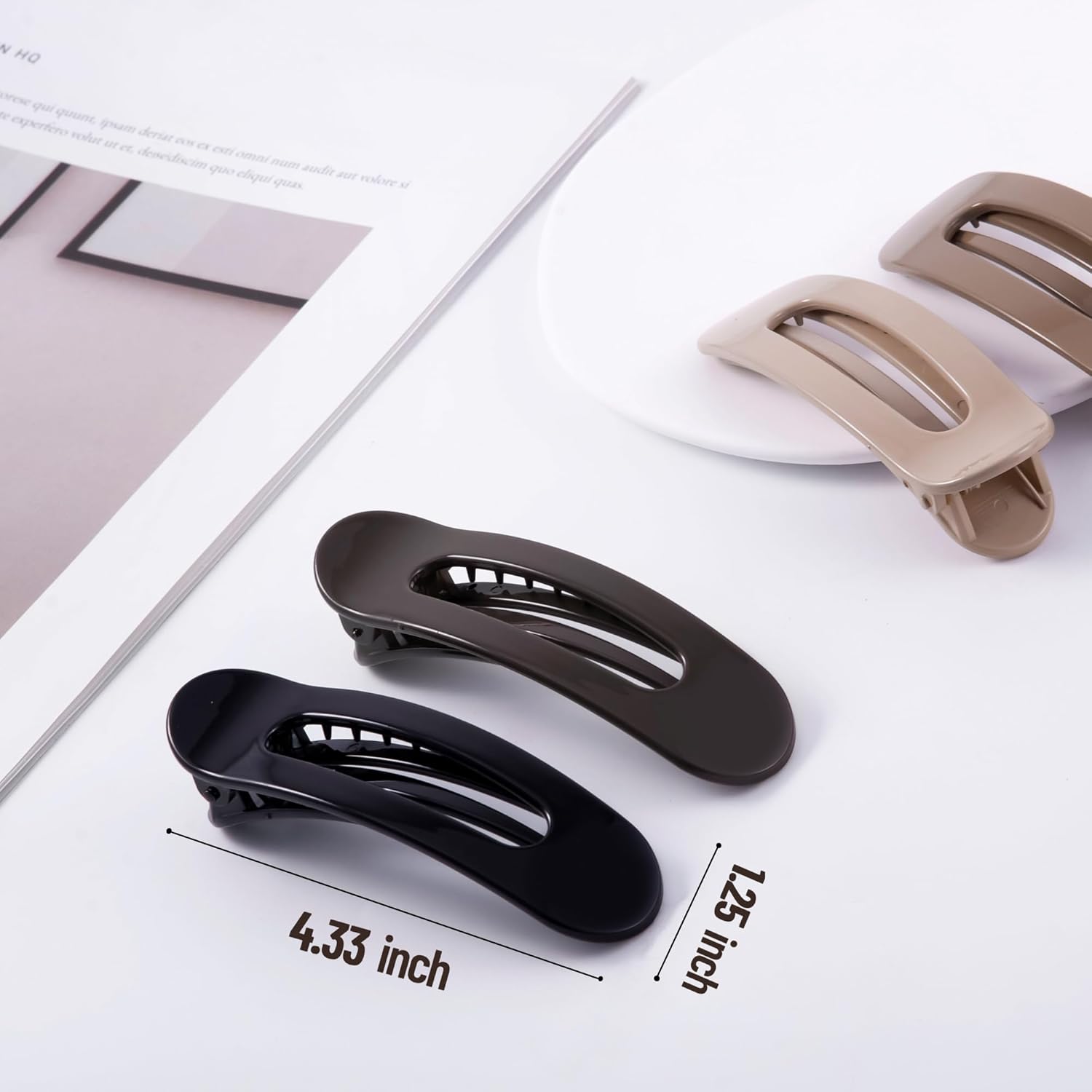 - 【Color and Size】The large flat clip set is 4.33x1.25inches in size,comes in 4 colors,with 2 pcs of each color. The color scheme is harmonious and easily matches your clothing.