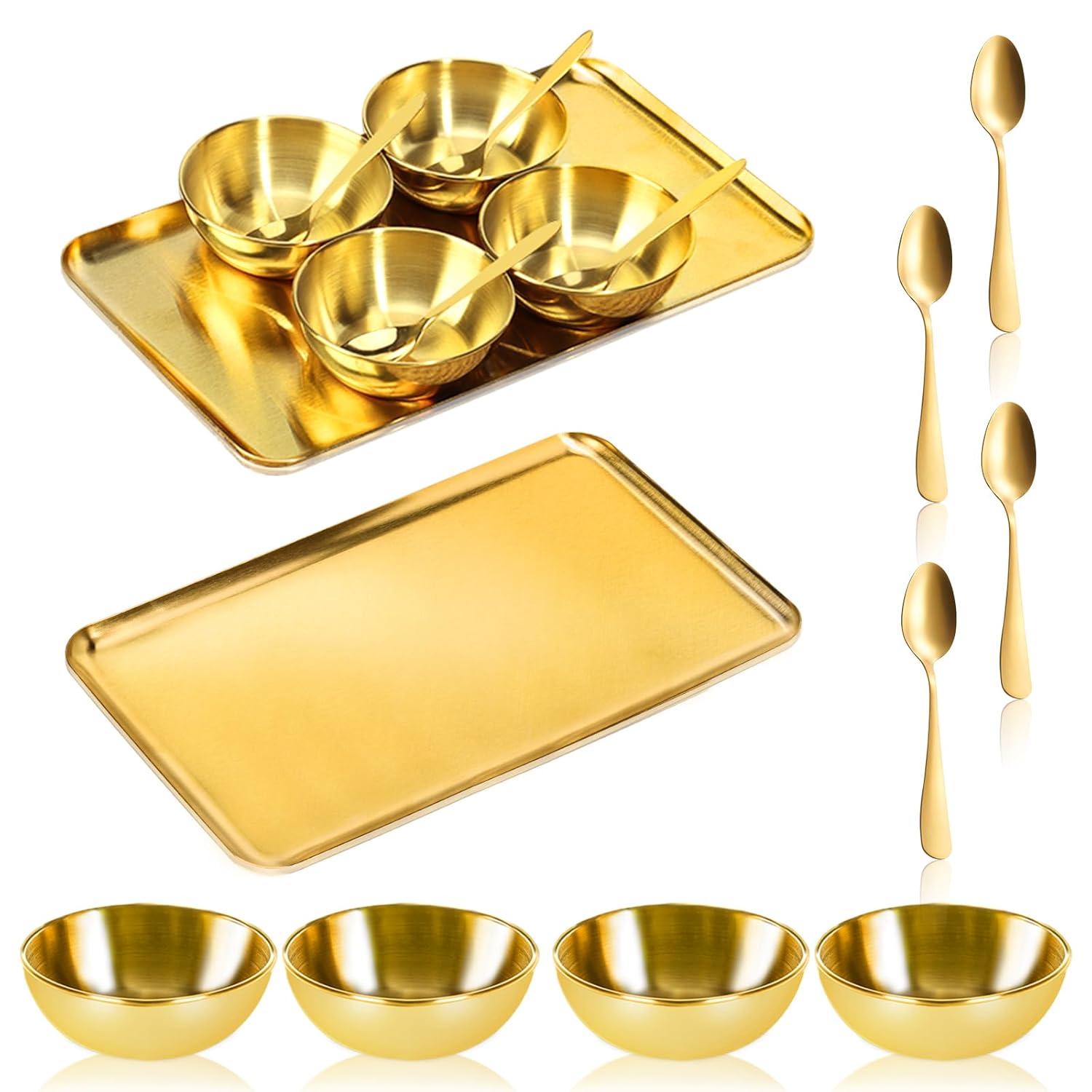 - 3.Easy to Clean: The spa tray gold bowl for facial tray, along with these mini gold Spoons, that each piece features a smooth edge.This attention to detail not only enhances the aesthetic appeal of the tray and spoons but also contributes to their practicality. And the gold esthetician spoon can scoop lotion and stir facial masks. The smooth edges ensures that bowl for facial tray with spoons are easy to clean and maintain. The easy-care design allows for effortless cleaning; simply wipe the surface with a damp cloth to restore its pristine condition.