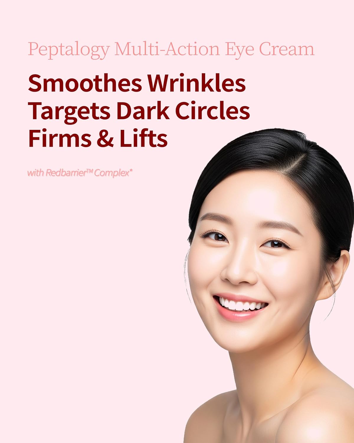 Peptalogy Multi-Action Eye Cream | Anti-Aging Eye Treatment for Puffiness & Wrinkles with Peptides, Tranexamic Acid & Niacinamide | Vegan Korean Skincare for Firming & Lifting, 1.01 fl.oz