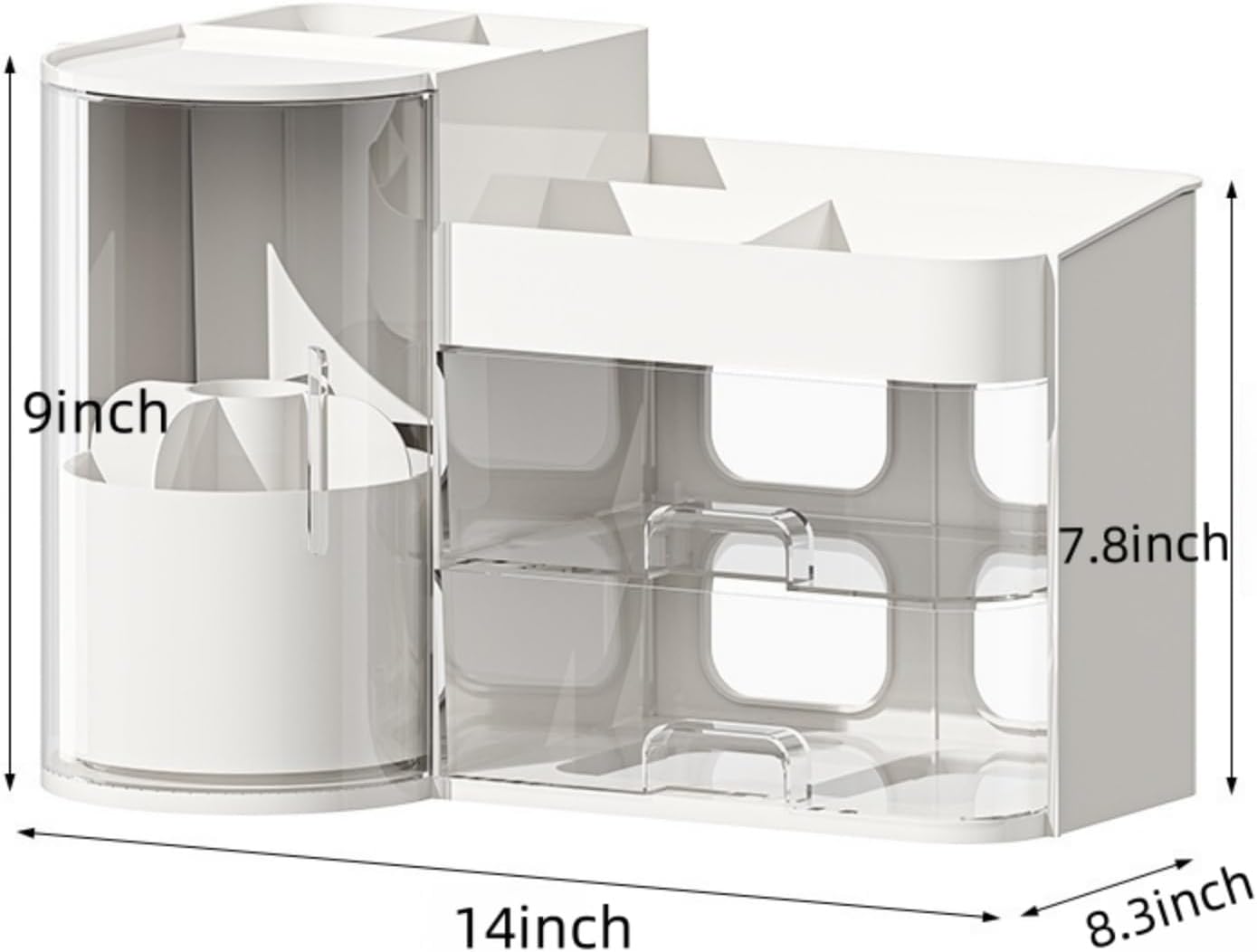 Makeup Organizer with Rotating Brush Holder Cosmetic Organizer with Drawers Countertop Skincare Organizer for Vanity,Cosmetic Display Case Storage (White, Large)