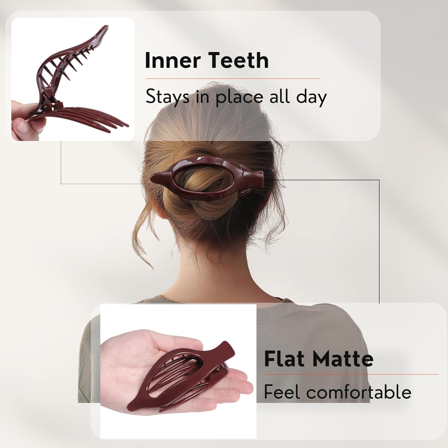- Comfortable Flat Design, Ideal for Driving & All-Day Wear:Our glossy hair clips feature a unique flat-back shape that eliminates pressure on the back of your head—perfect for driving, working, or sitting in high-backed chairs. Unlike traditional bulky claw clips, this streamlined design stays flush and secure, offering all-day comfort without the poke.