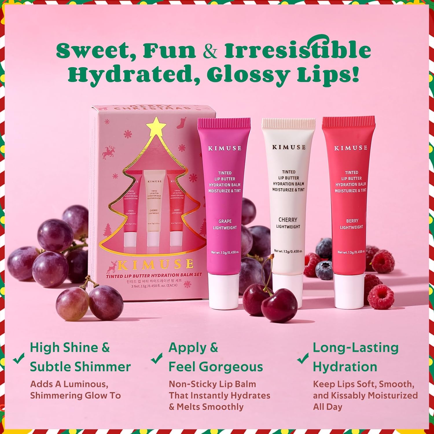 KIMUSE 3 Pack Tinted Lip Butter Hydration Balm, Hydrating Lip Treatment with Hyaluronic Acid & Vitamin E, Tinted Lip Balm for Instant Moisture, Shine & Hydration, Supple Lips, Vegan & Cruelty-Free