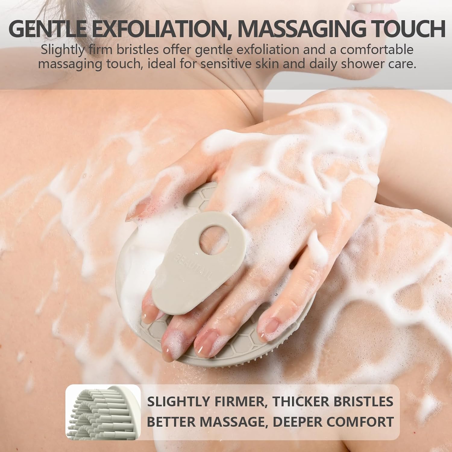 Silicone Body Scrubber with Scrub Net Set, BEAUTAIL 2 Pack for Rich Lather, Deep Cleansing, and Exfoliation – Durable, Easy to Clean, Gentle or Firmer Options – 1 Shower Brush Gray, 1 Scrub Net Gray