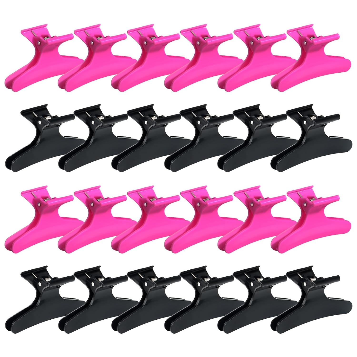 Ondder 24 Pcs Black and Hot Pink Butterfly Hair Clips for Styling and Sectioning - Pro Claws Clamps for Cutting, Coloring - Hair Accessories for Women Girls